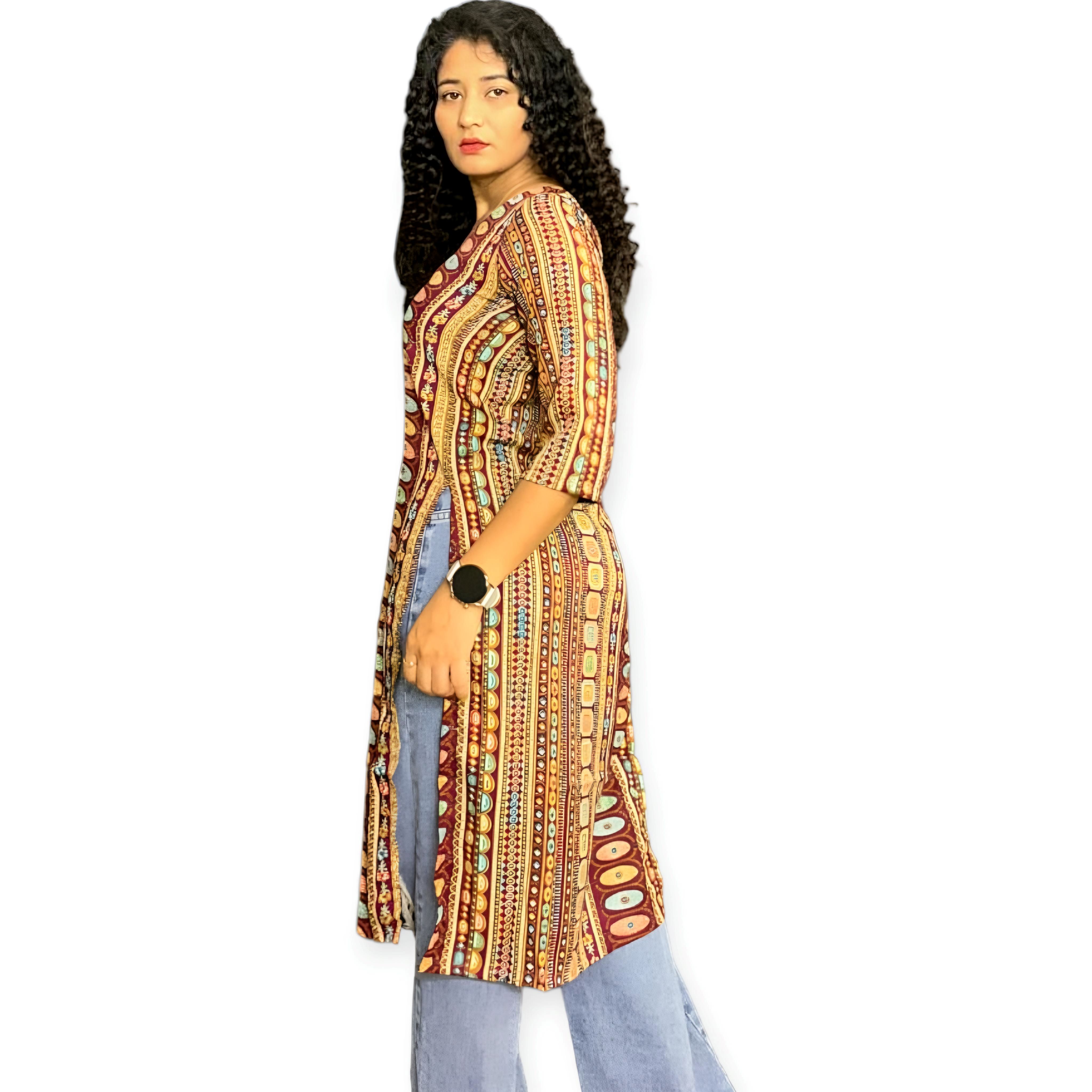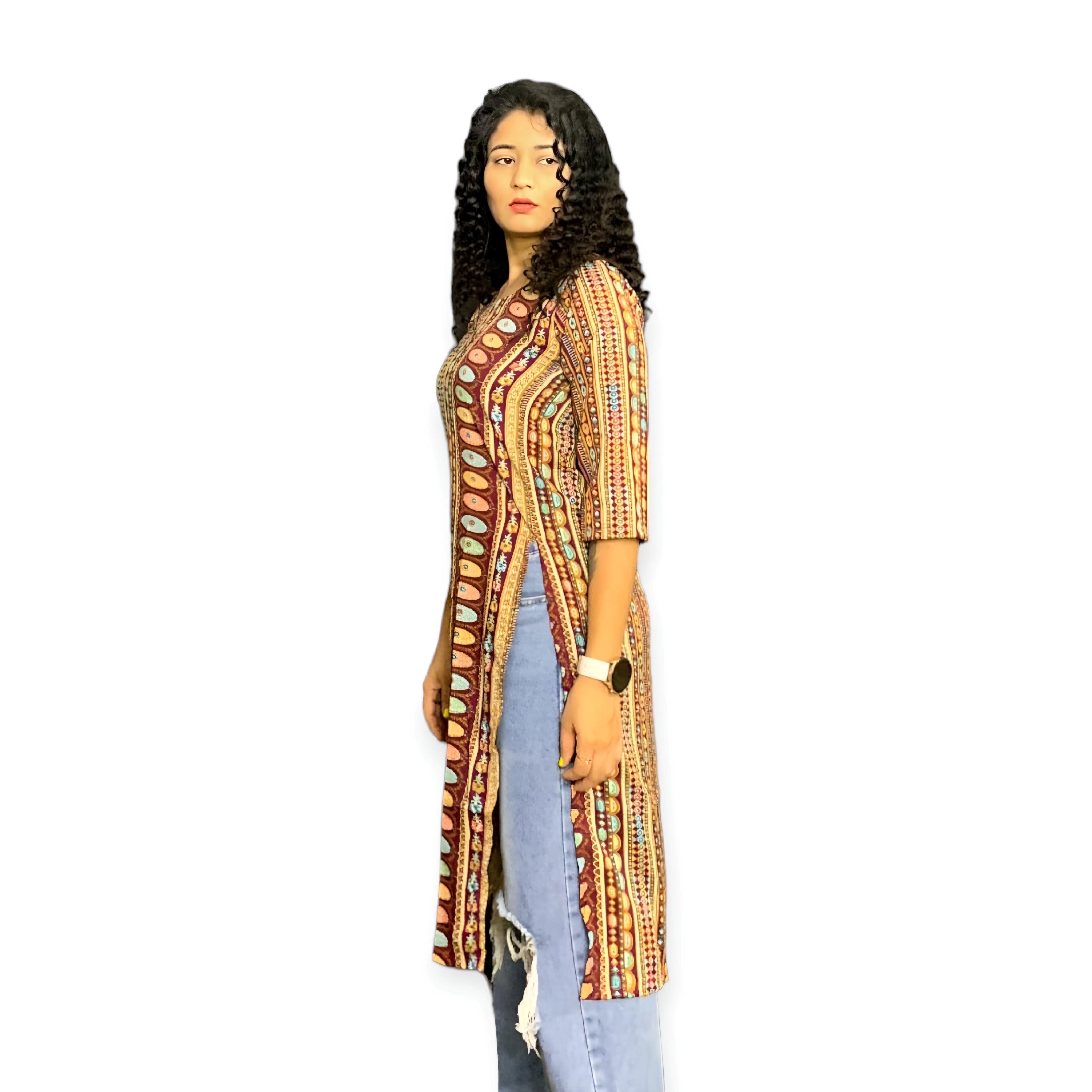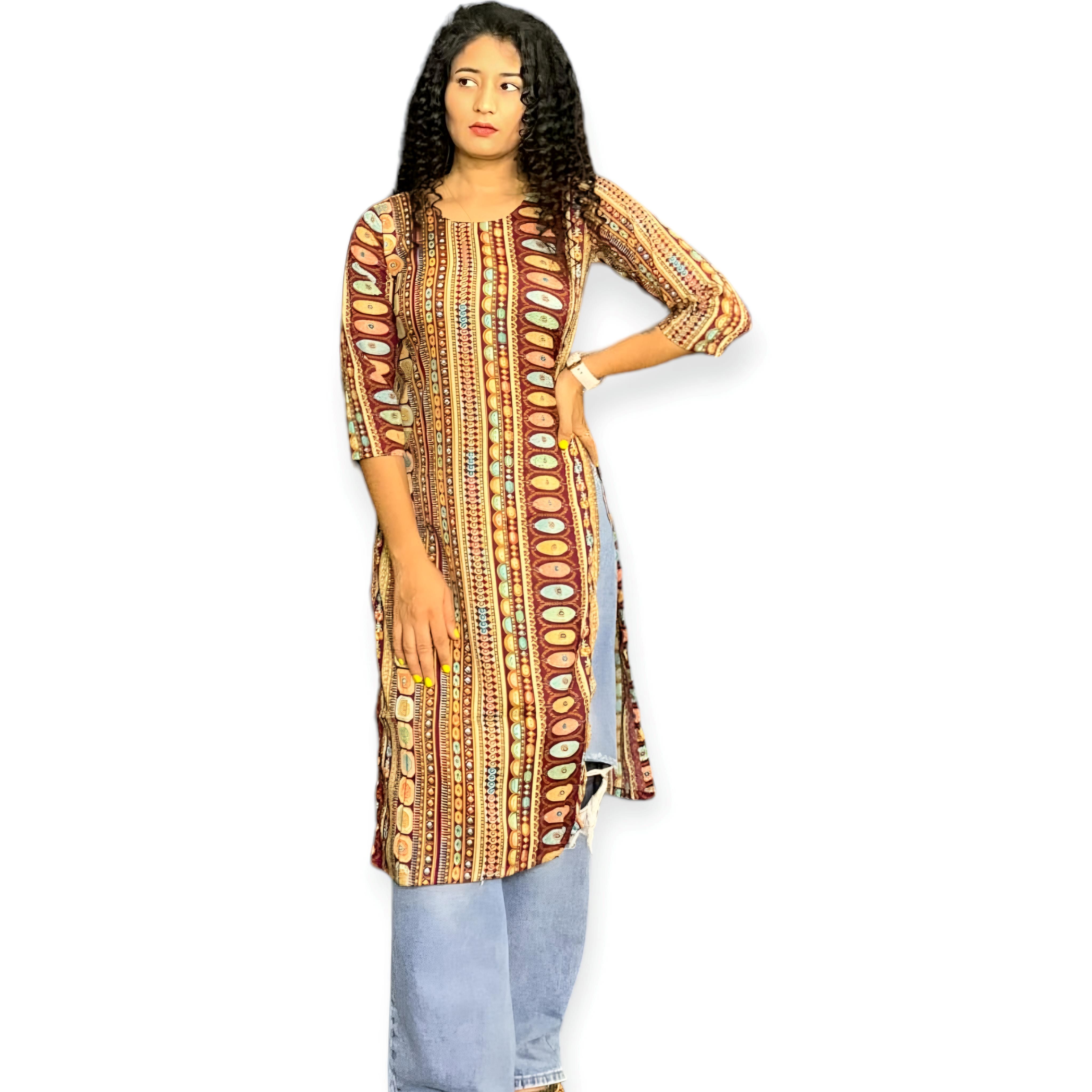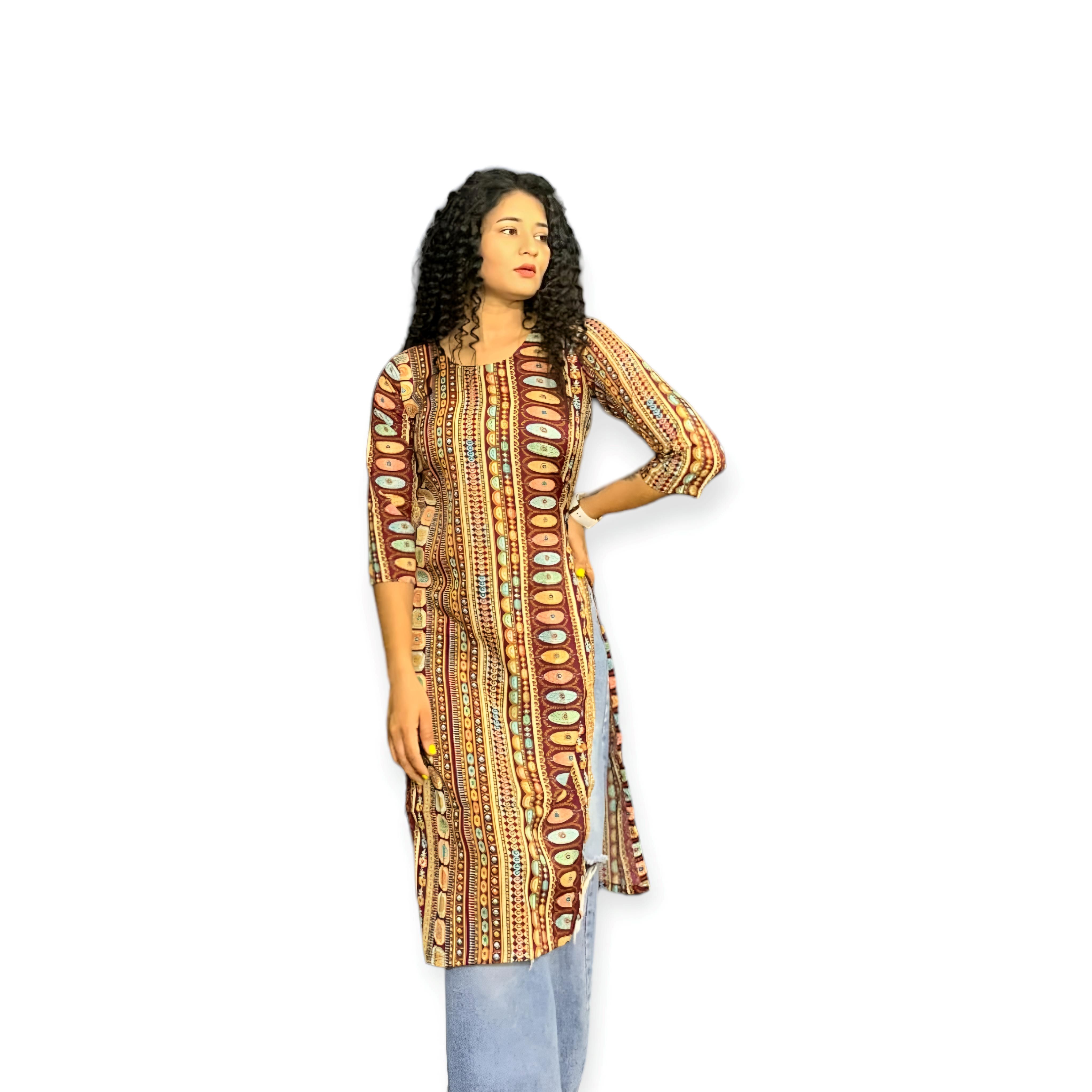 Women Multicolour Block Print Regular Fit Straight Abstract Crepe Kurta