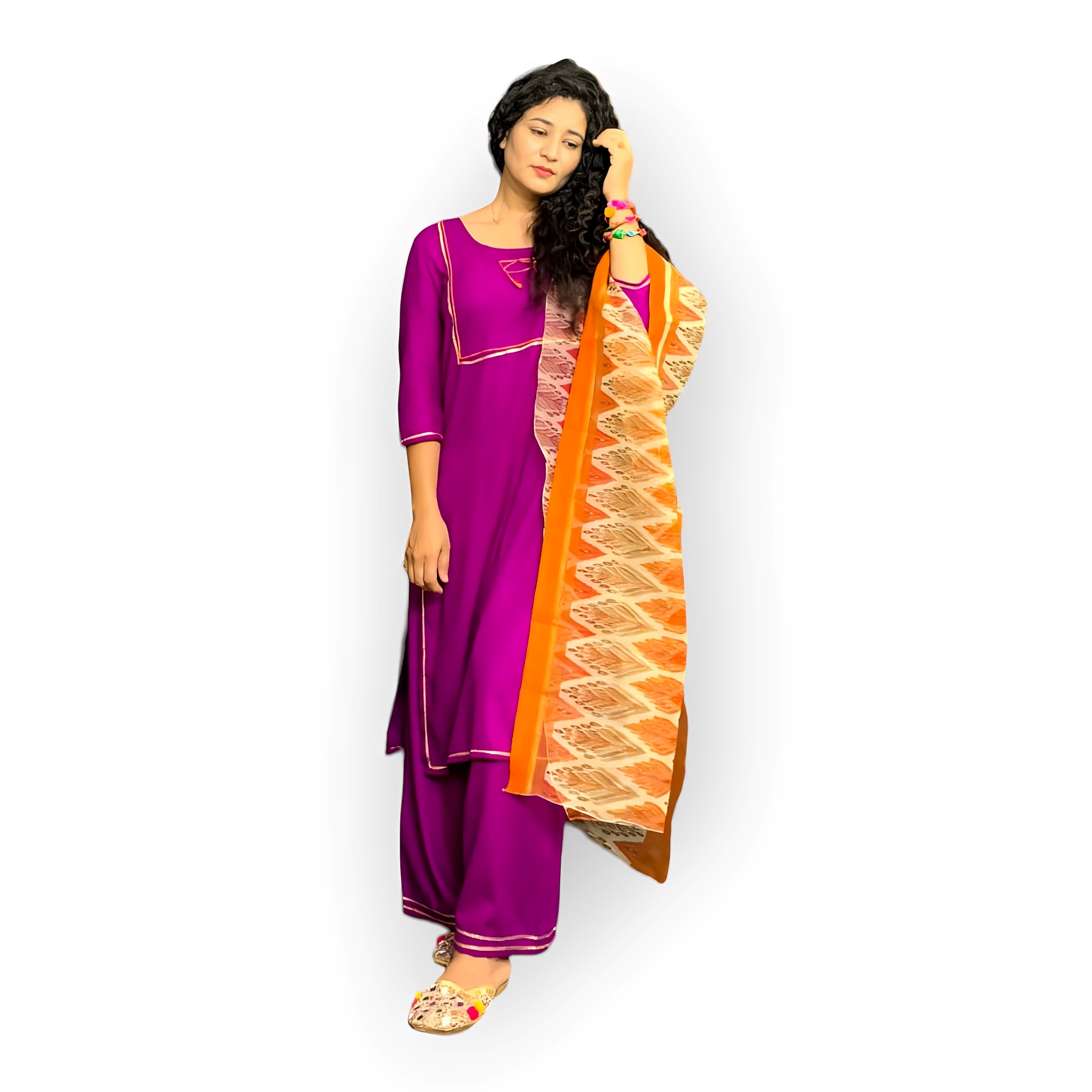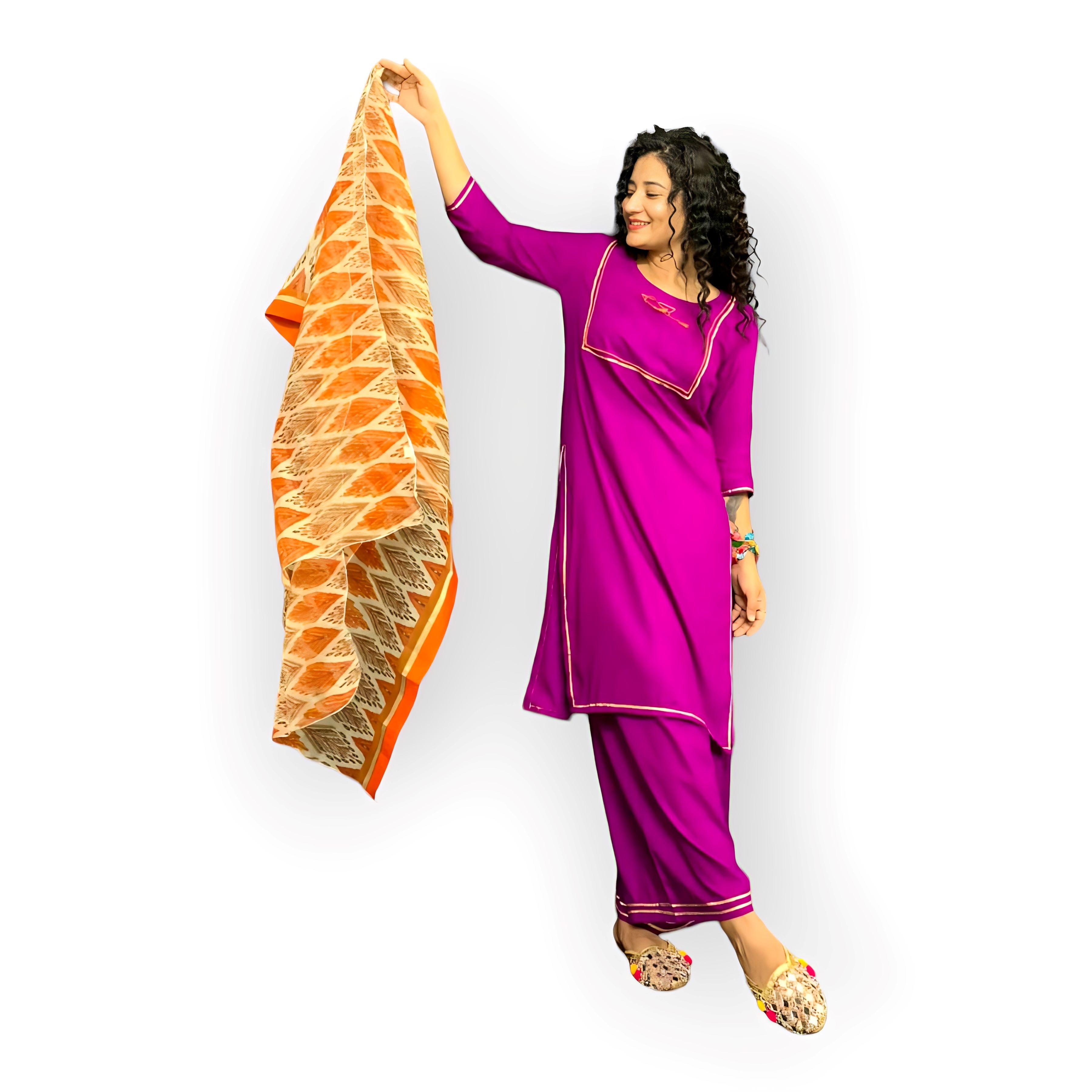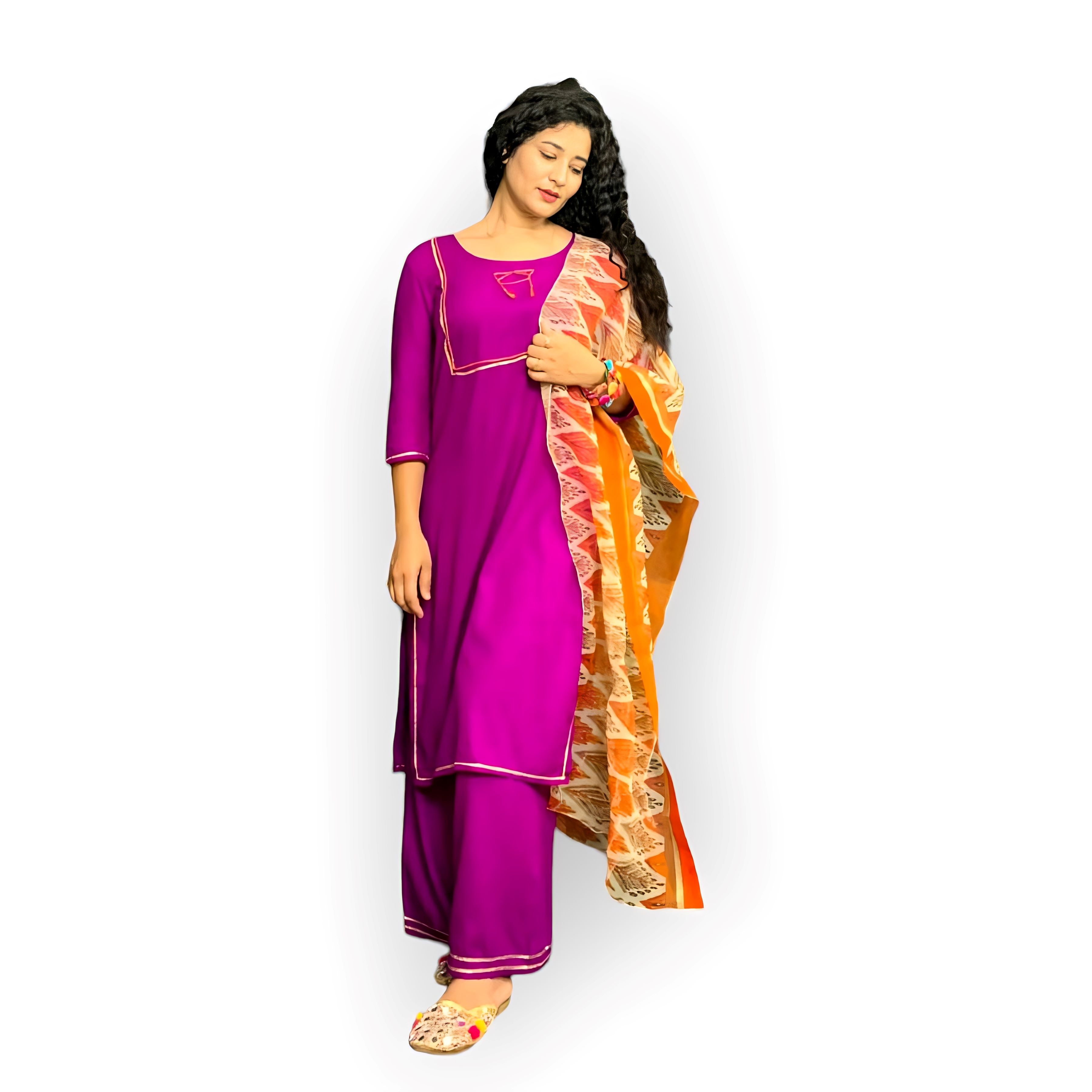 Purple Solid Kurta with Palazzos