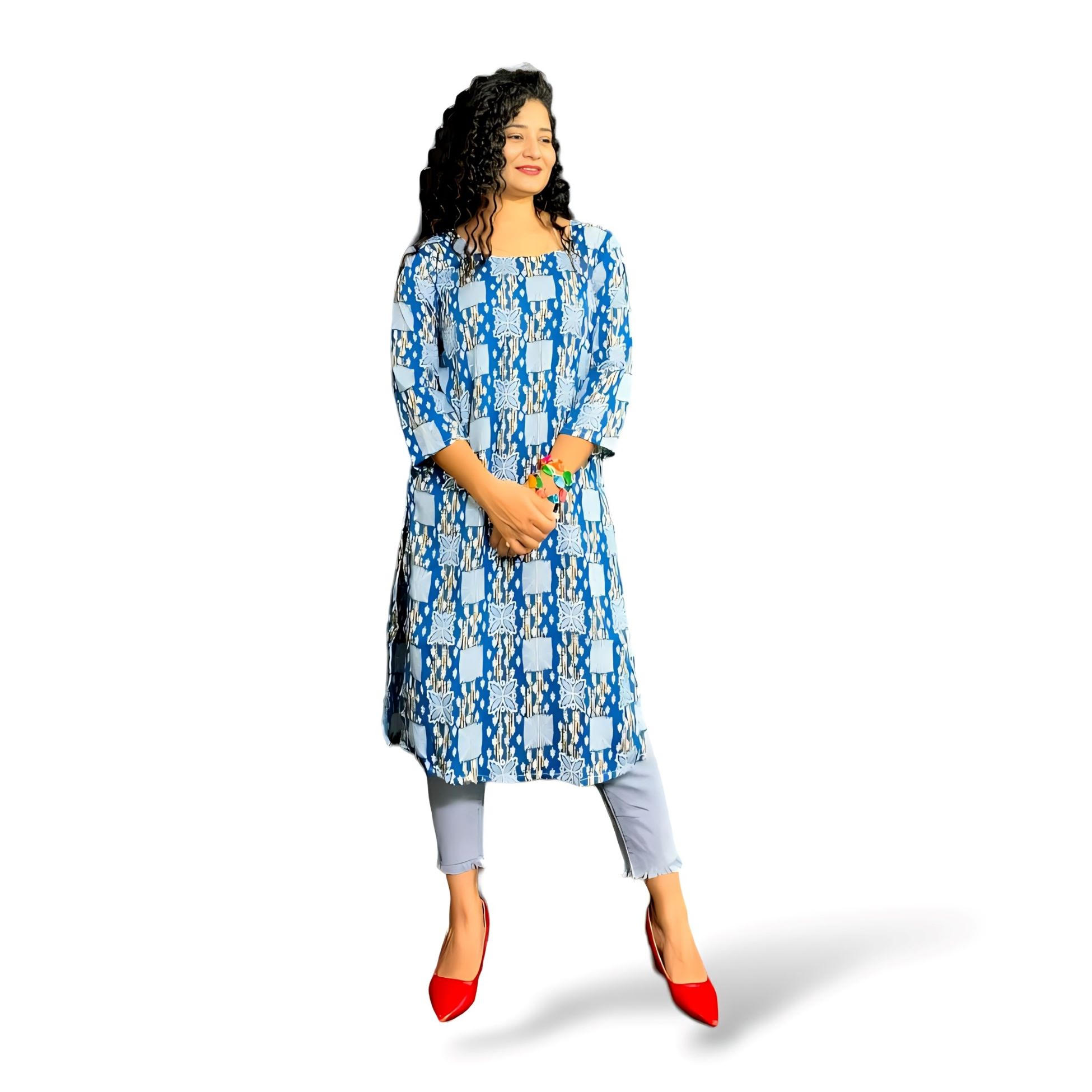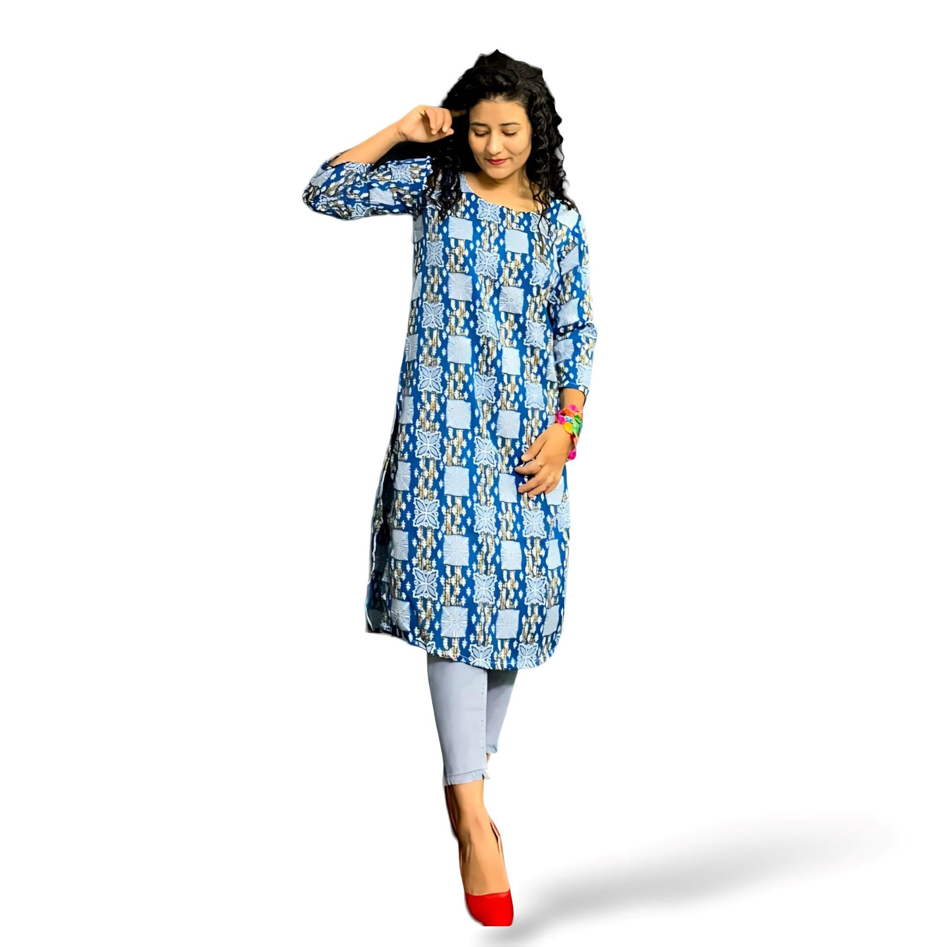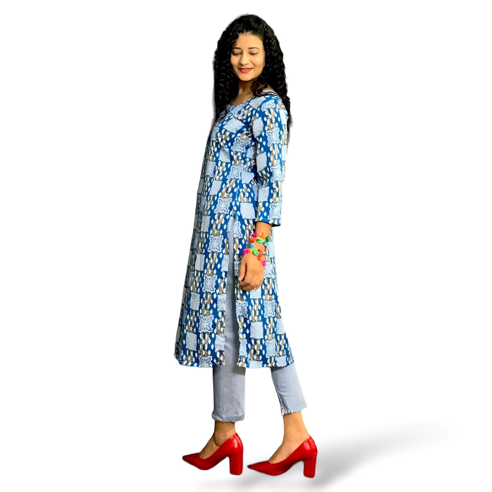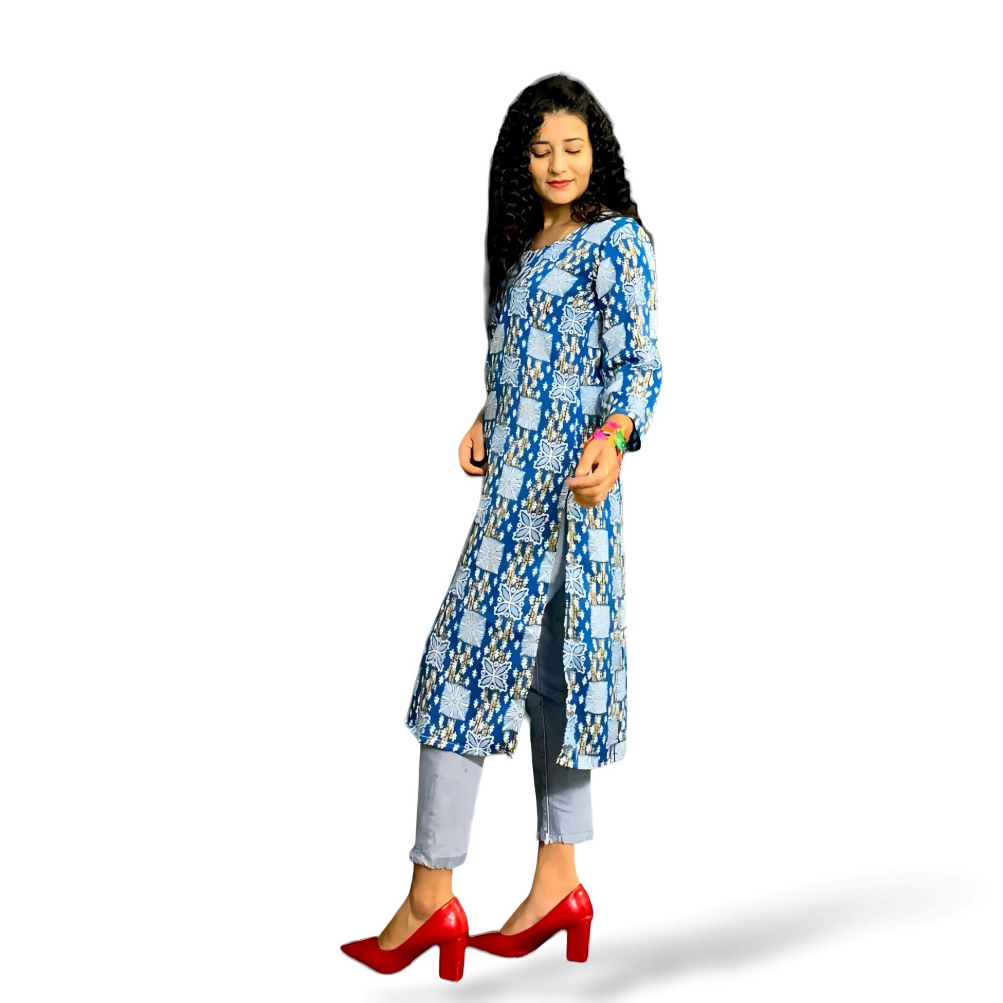 Floral Print Crepe Calf Length Kurta with 3/4 Sleeves